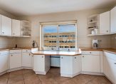 Naast de living bevindt zich een dichte keuken met een praktische inrichting voorzien van veel kastruimte en alle gangbare apparatuur en een spoelbak onder het raam met uitzicht over de gracht en door de straat;