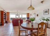 Hal met garderobe, toilet, brede gang naar de fraaie en zonnige L- woonkamer ( ca 50 m2) met erker en openslaande deuren naar een inpandig balkon ( ca. 10 m2) op het zuiden;
