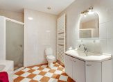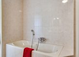 de sfeervolle badkamer heeft een douche, ligbad, toilet en wastafelcombinatie; ruime ouderslaapkamer ca. 19 m2; een logeerkamer ca. 13 m2 en een studeer/werkkamer van ca. 10 m2;