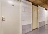 Onder het complex bevinden zich de bergingen van de appartementen.