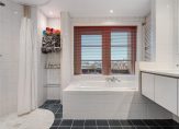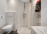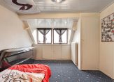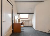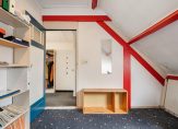 een kleine, leuke kinderkamer aan de voorzijde en een grote badkamer aan de achterzijde met ligbad, douche, toilet en wastafelmeubel.