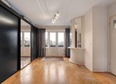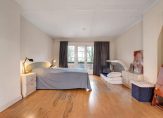 Overloop, 2 grote slaapkamers zijn samengevoegd tot een multifunctionele kamer met slaap, zit- en kleedruimte en heeft toegang tot een balkon aan de voorzijde met vrij uitzicht door de straat en aan de achterzijde met uitzicht over de tuinen.